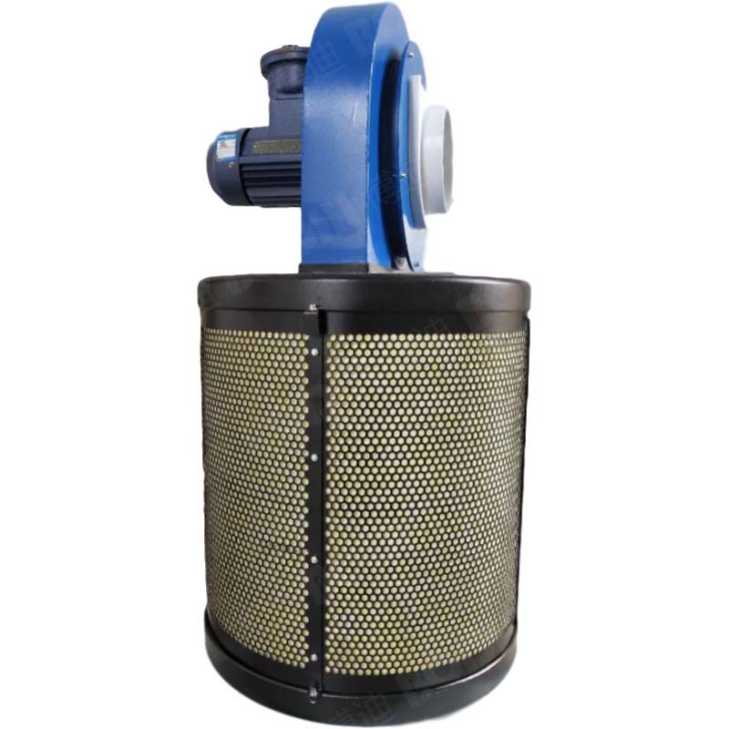 本机采用离心式结构,将需要处理的大量油烟雾由风机吸入并送往金属螺旋式机械过滤器(该过滤器是本设备的关键核心部件,它无需更换及清理,能处理、吸收大量的油雾及粉尘),被过滤器收集。初步处理的含油雾气体再经二级过滤器多次过滤后排出。过滤直径可达0.5um, 净化后的空气可以排入室内循环使用,而分离出来的油排入收集筒后,也可再度使用。