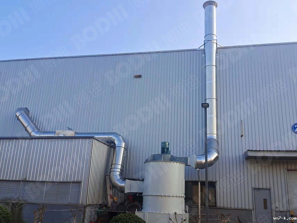 机床产生的大量石墨粉尘污染物,由风机通过管道系统输送到湿式分离器进行收集, 由于粉尘温度较高 , 在支管汇合处设置管道预喷淋系统,降温后的气体切向进入湿式分离器含水喷淋系统的入口,利用离心力作用,捕捉的污染物质的污水被气流分离出来。