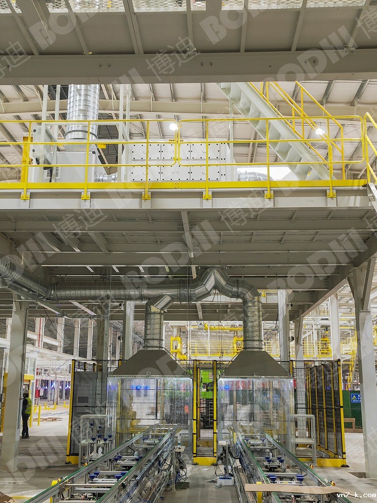 项目背景:某新能源车企生产过程中散发的废气问题,主要涉及三个工作区:前风挡工作区、后风挡工作区、侧窗工作区。这些区域在生产过程中会排放大量的VOCs废气,给车间内外的空气质量带来影响,为了有效应对这些废气的处理问题决定进行抽排风设备改造。